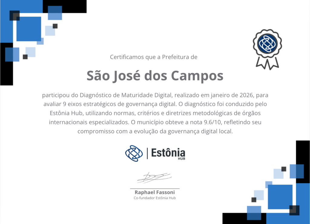 Inspirado no modelo da Estônia, país referência global ao ter 100% de seus serviços governamentais digitalizados, o diagnóstico avaliou nove eixos estratégicos de governança. São José dos Campos atingiu uma nota expressiva na avaliação, índice que reflete o alto compromisso da atual gestão com a inovação.